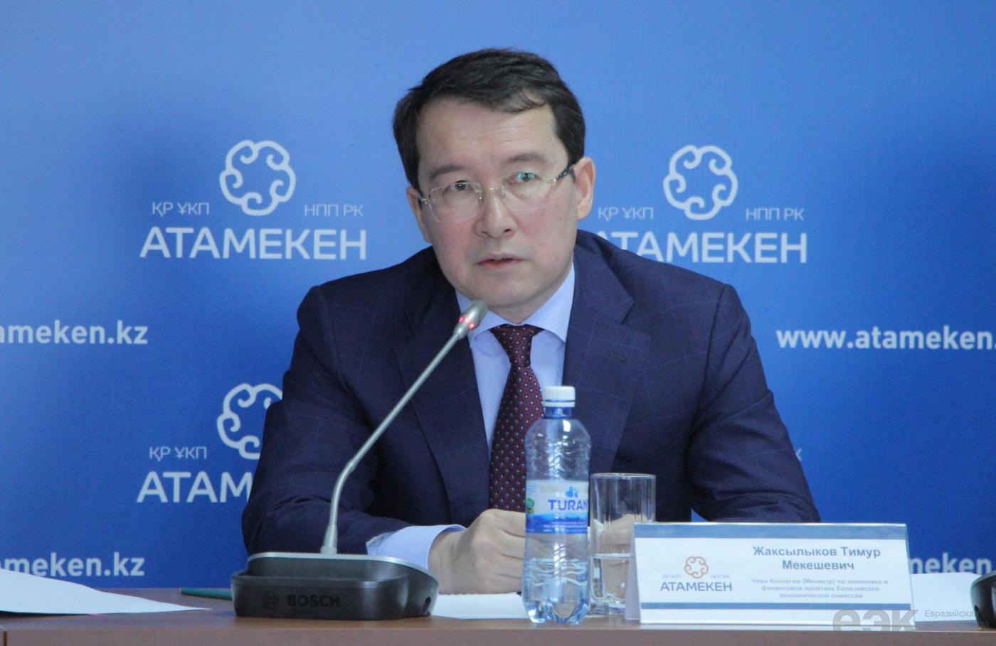 «Еўразійская эканамічная камісія (ЕЭК) пачынае прамое і адкрытае абмеркаванне праблемных пытанняў інтэграцыі з прадпрымальнікамі краін Еўразійскага эканамічнага саюза (ЕАЭС) на месцах», - заявіў член Калегіі (міністр) па эканоміцы і фінансавай палітыцы ЕЭК Цімур Жаксылыкаў падчас сустрэчы з прадстаўнікамі бізнэсу Казахстана на пляцоўцы Нацыянальнай палаты прадпрымальнікаў Рэспублікі Казахстан «Атамекен».