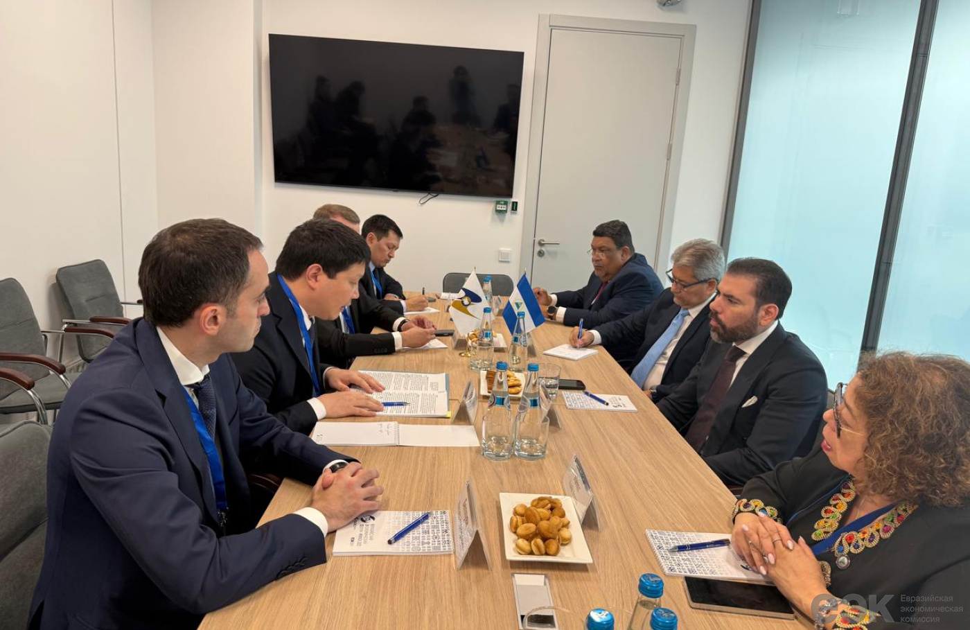 і Ўрада Нікарагуа – міністра па інтэграцыі і макраэканоміцы ЕЭК Эльдара Алішэрава і саветніка Прэзідэнта Нікарагуа па пытаннях інвестыцый, гандлю і міжнароднага супрацоўніцтва Лаўрэана Артэгай Мурыльё.