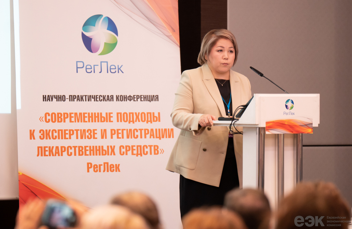 Аб удасканаленні права Еўразійскага эканамічнага саюза для забеспячэння пераходу да агульнага рынку лекаў і інструментах узаемадзеяння краін ЕАЭС у рамках гэтага рынку распавяла намеснік дырэктара Дэпартамента тэхнічнага рэгулявання і акрэдытацыі Еўразійскай эканамічнай камісіі Чынара Мамбеталіева на навукова-практычнай канферэнцыі «Рэгуляторная практыка і рэгістрацыя лекавых сродкаў – РэгЛек-2024», якая прайшла ў Маскве.