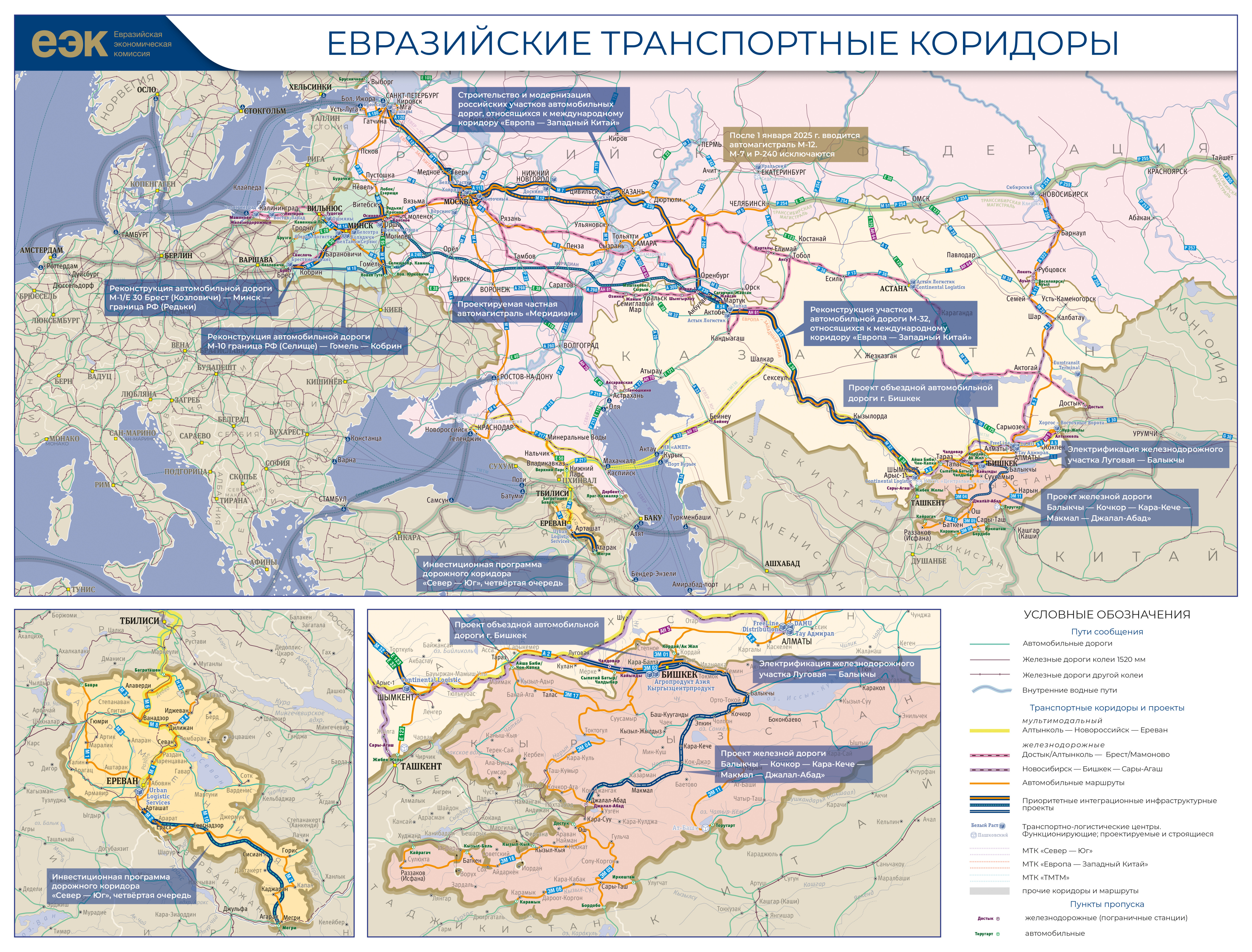 Статьей 86 Договора о Евразийском экономическом союзе от 29 мая 2014 года в числе основных приоритетов скоординированной (согласованной) транспортной политики, направленных на развитие инфраструктуры в том числе определены: