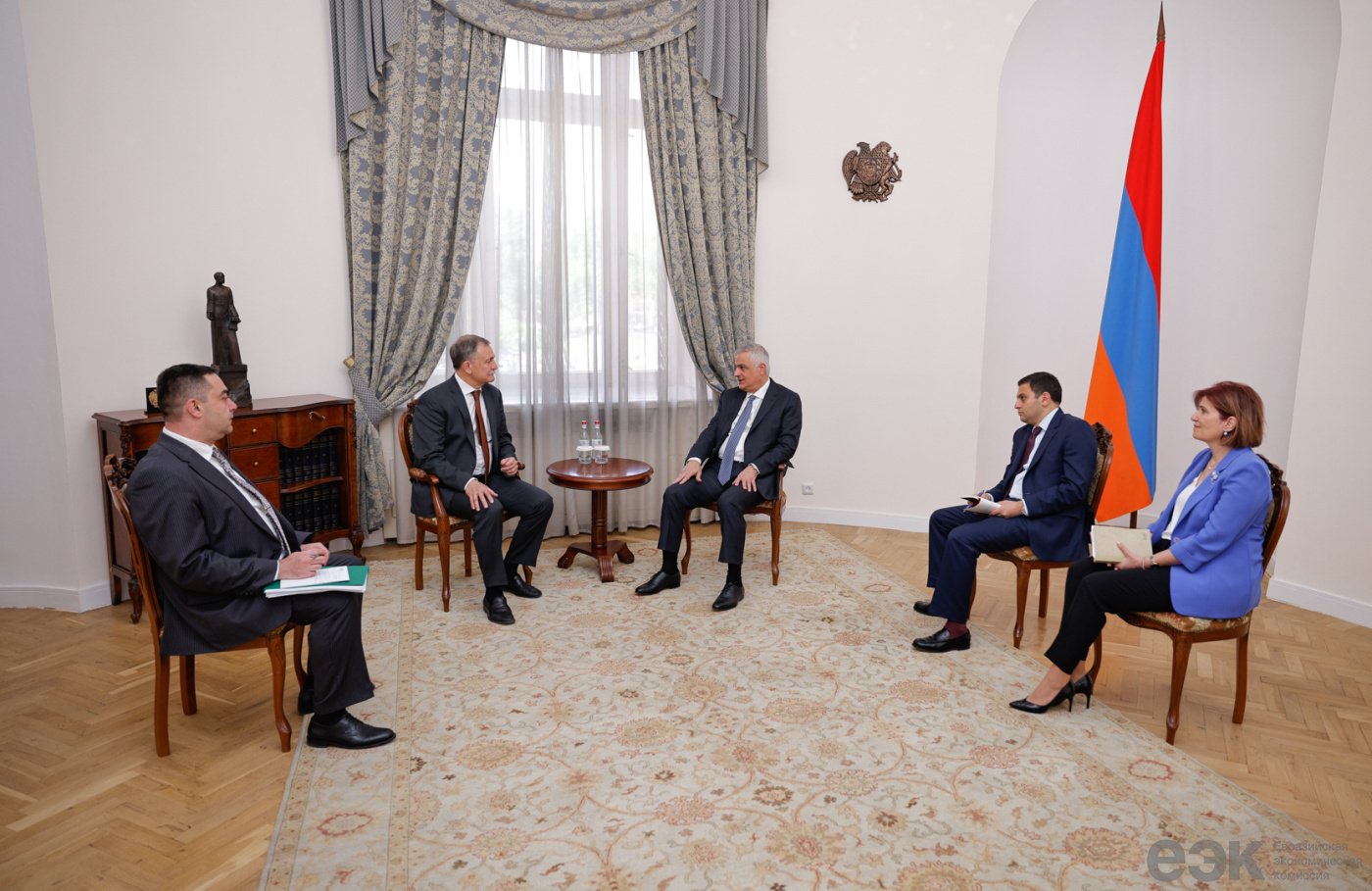 Եվրասիական տնտեսական հանձնաժողովի մաքսային համագործակցության նախարար Ռուսլան Դավիդովը հանդիպել է Հայաստանի Հանրապետության փոխվարչապետ Մհեր Գրիգորյանի հետ: