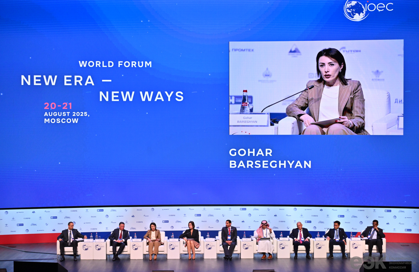 Гоар Барсегян Мәскеуде өткен "Жаңа дәуір – жаңа жолдар" дүниежүзілік форумына қатысушылардың II жыл сайынғы кездесуі барысындағы "Үлкен Еуразиялық әріптестік: дамудың векторлары мен құралдары" пленарлық отырысында ЕАЭО шеңберіндегі осы қызметке баса назар аударды.