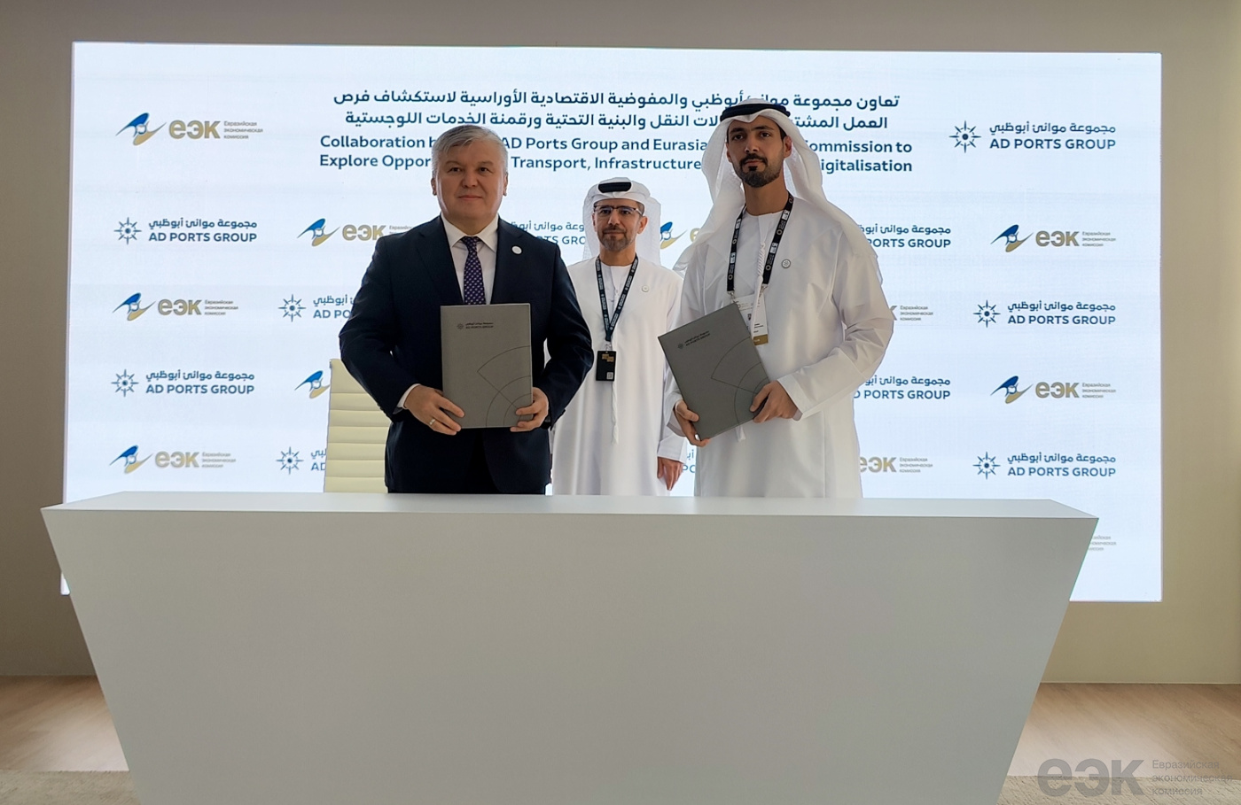 В соответствии с подписанным сторонами протоколом AD Ports Group и ЕЭК в 2025 – 2026 годах планируют сотрудничество и обмен лучшими практиками в области транспорта, инфраструктуры и цифровизации логистики, а также изучение возможностей создания новых логистических центров в странах ЕАЭС.