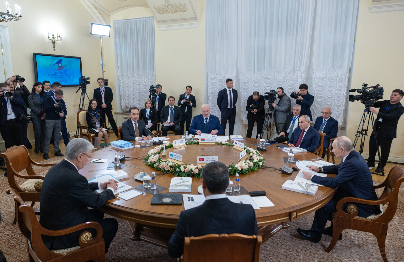 В заседании приняли участие главы государств стран Евразийского экономического союза: Премьер-министр Республики Армения Никол Пашинян, Президент Республики Беларусь Александр Лукашенко, Президент Республики Казахстан Касым-Жомарт Токаев, Президент Кыргызской Республики Садыр Жапаров, Президент Российской Федерации Владимир Путин, а также Председатель Коллегии Евразийской экономической комиссии Бакытжан Сагинтаев.