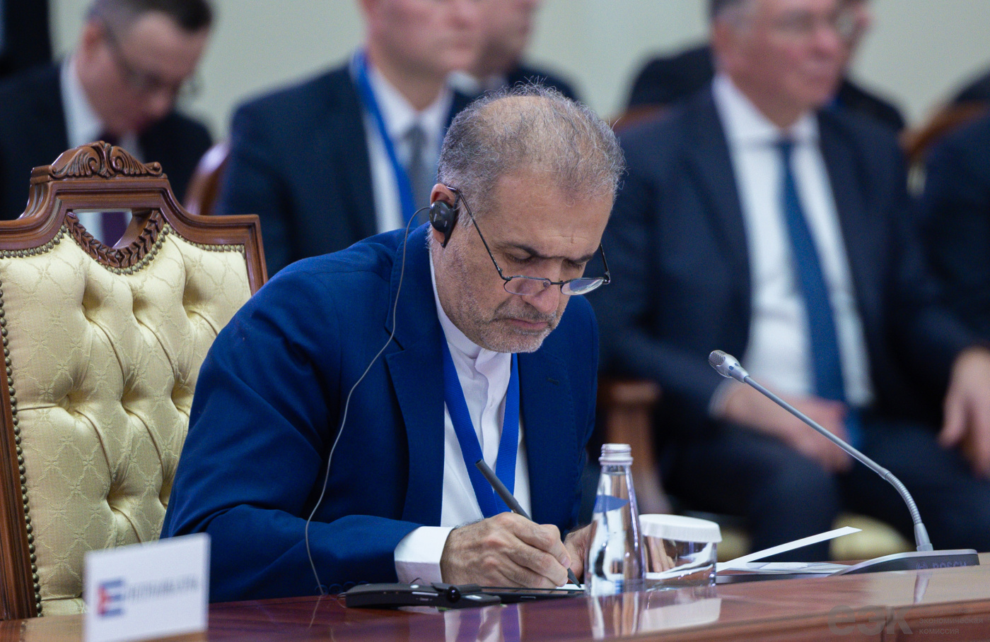 Со стороны государств – наблюдателей при ЕАЭС – Президент Республики Узбекистан Шавкат Мирзиёев, Президент Республики Куба Мигель Диас-Канель Бермудес (по видеосвязи), Чрезвычайный и Полномочный Посол Исламской Республики Иран в Российской Федерации Казем Джалали.