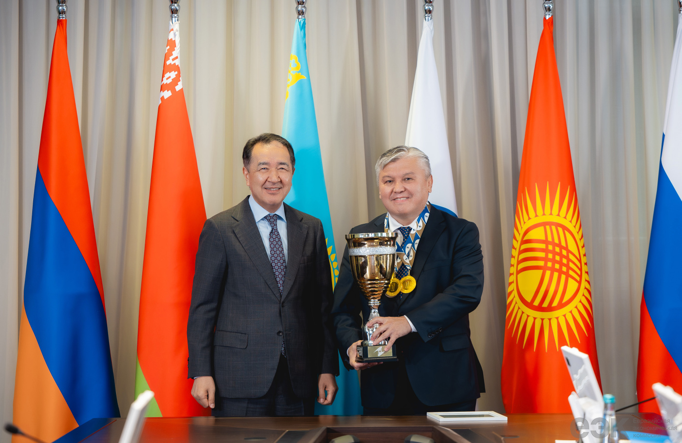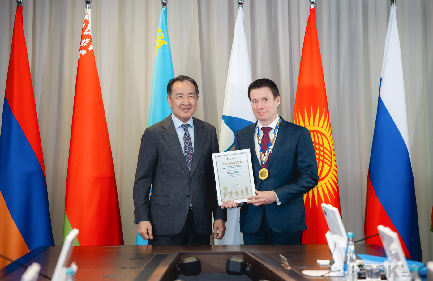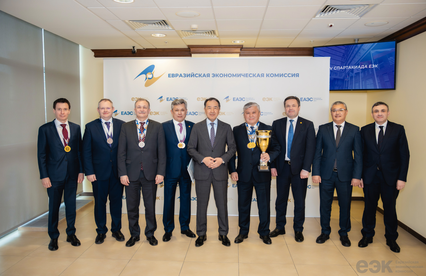 Две золотые медали – за успех в беге на 100 м и победу в составе команды блока в турнире по мини-футболу, а также бронзовую медаль – за третье место в подтягиваниях – взял министр по энергетике и инфраструктуре ЕЭК Арзыбек Кожошев. Золото в бильярдном турнире и бронзу в мини-футболе завоевал министр по экономике и финансовой политике Комиссии Бахыт Султанов. Первое место в соревновании по подтягиваниям – у министра по торговле ЕЭК Андрея Слепнева. Серебро в кроссе на 3 км – в активе министра по таможенному сотрудничеству Комиссии Руслана Давыдова. Министр по конкуренции и антимонопольному регулированию ЕЭК Максим Ермолович занял третье место в соревновании по большому теннису.